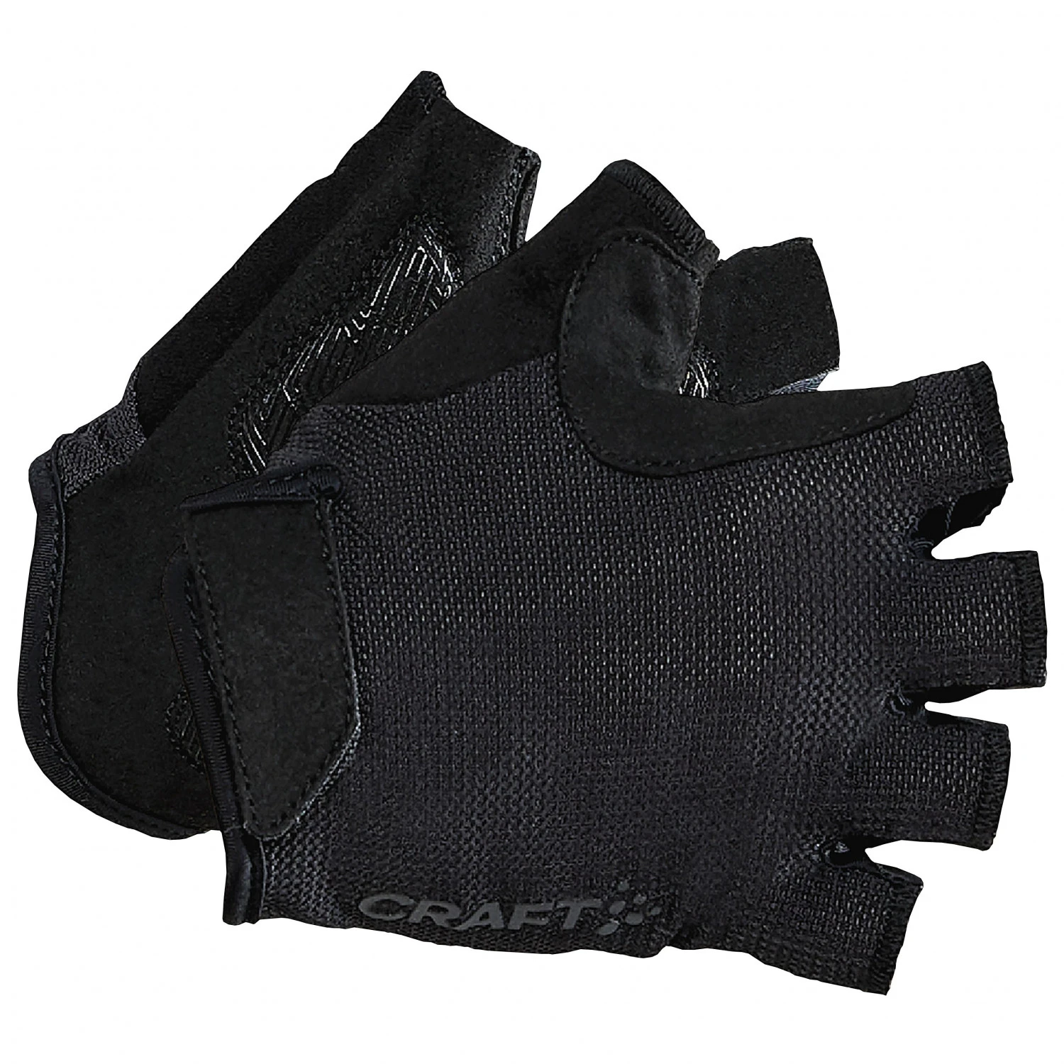 Der Essence Glove von Craft ist ein klassischer Fahrradhandschuh im Half-Finger Design. Der Handrücken dieser Handschuhe besteht aus recyceltem Polyamid, gemischt mit Elasthan, wodurch ein elastischer Materialmix entsteht, welcher das An- und Ausziehen erleichtert. Außerdem sorgt dieses Mesh-Material für gute Atmungsaktivität, sodass bei schweißtreibenden Bedingungen die Feuchtigkeit gut nach außen dringen kann. Fixiert wird der Essence Glove mit einem Klettverschluss und auf der Handinnenseite befindet sich ein Silikongripper, welcher den Grip am Lenker verbessert. Eine Gelpolsterung entlang der Auflagepunkte der Handballens erhöhen den Komfort bei längeren Ausfahrten.