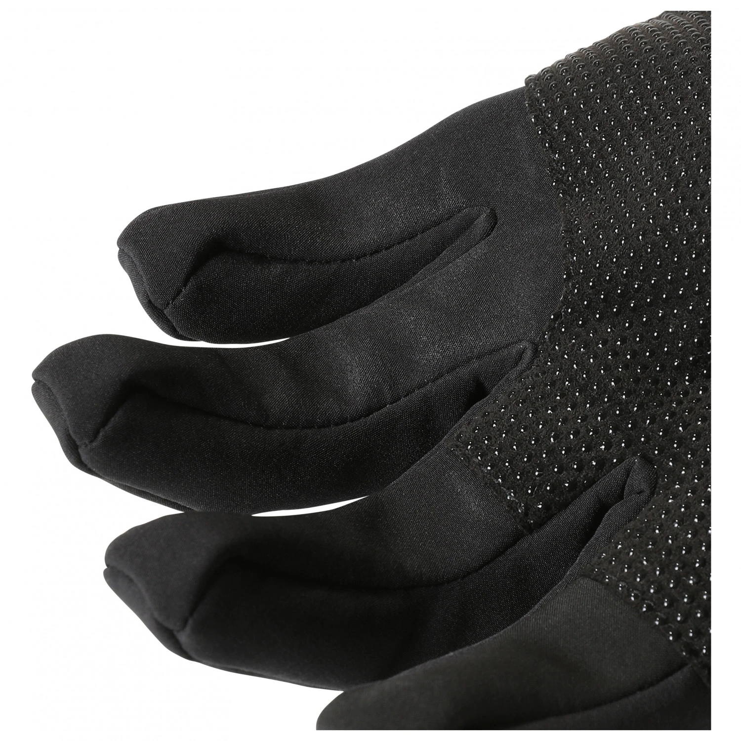 Die Apex Etip Glove von The North Face sind die idealen Allrounder für kühle und windige Tage! Die Fingerhandschuhe bestehen aus einem winddichten Softshellgewebe mit Stretchanteil, das zusätzlich mit einer wasserabweisenden DWR-Imprägnierung versehen ist. Auf der Innenseite kommt ein gebürstetes Trikotfutter aus recyceltem Polyester zum Einsatz, was den Handschuhen ein angenehm weiches Tragegefühl verleiht.